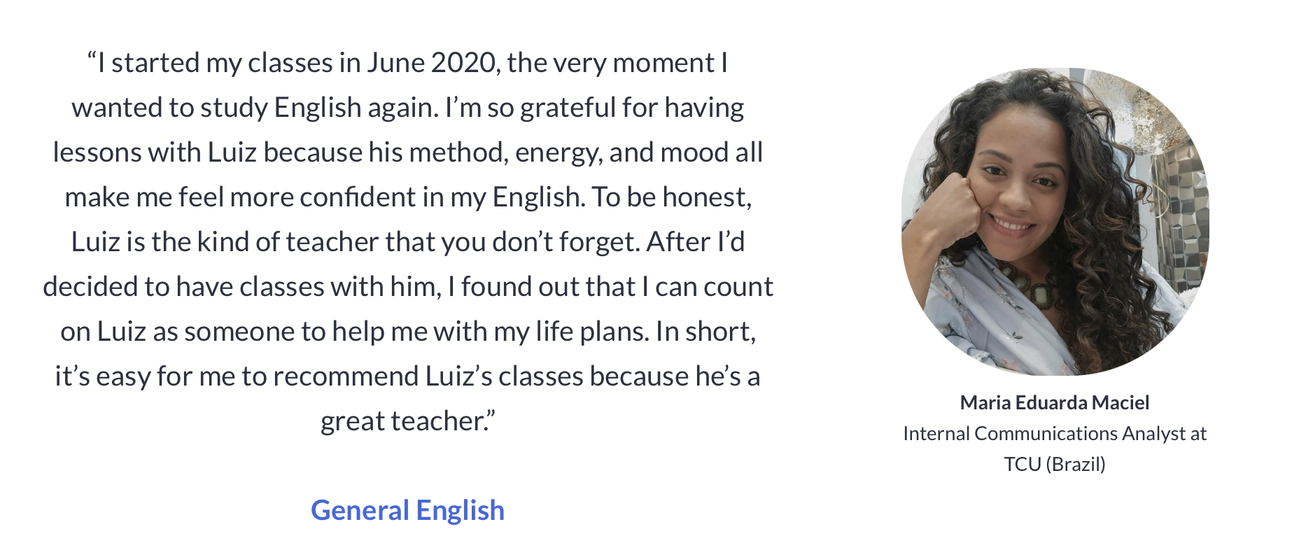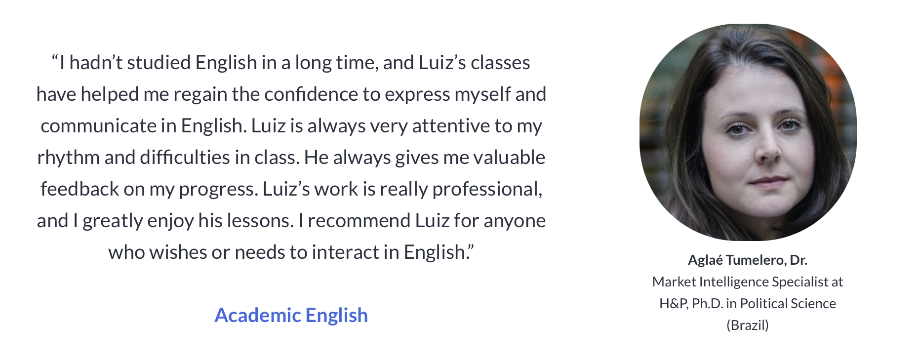 Here you will find information about learning English as a Foreign Language (EFL). Learn about my courses and classes in General English, Exam Preparation, Academic English, and Conversation to find out which option best suits your needs. To know more about my background in ELT, click on read more. If you cannot find the solution you are looking for, get in touch.