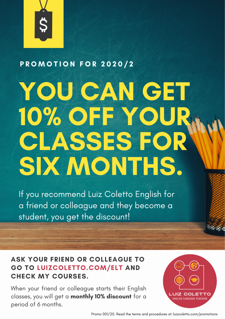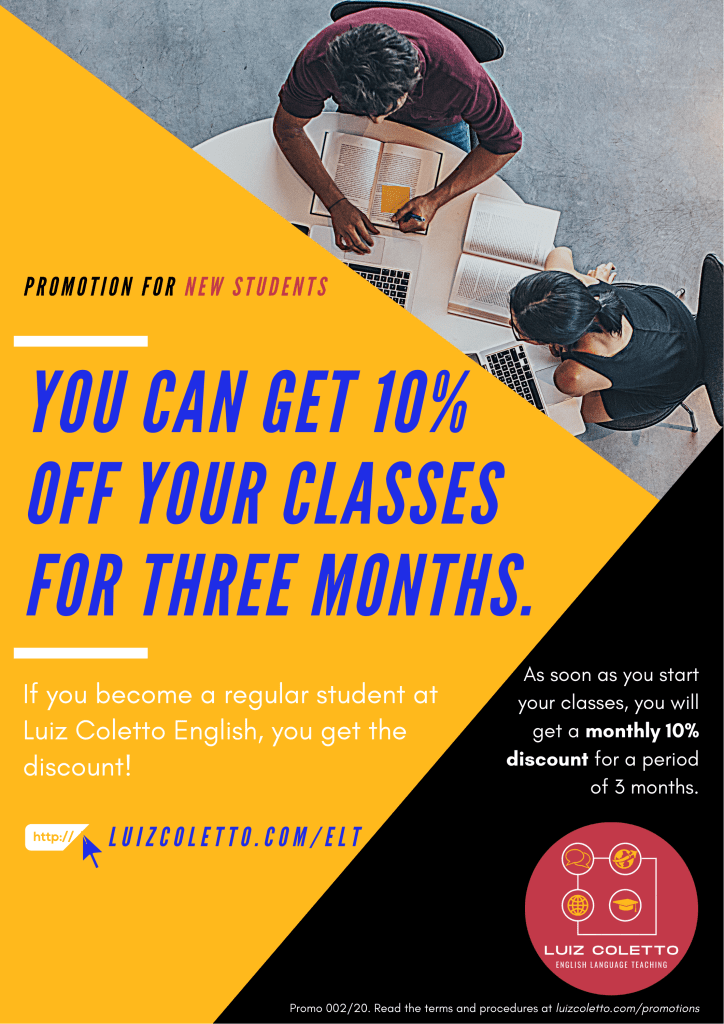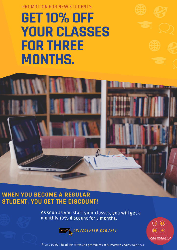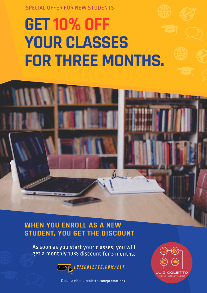 - If for any reason you quit studying with me while benefiting from this promotion, the discount will not be converted into future credits or compensation for your remaining classes.