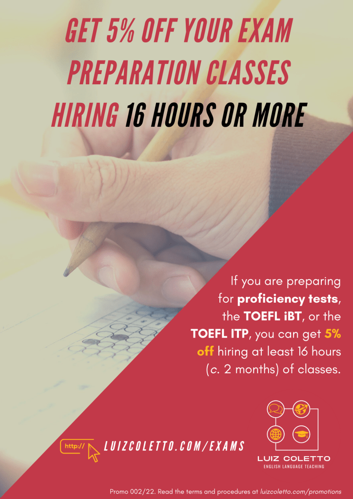 - This promotion is valid from February 20 to November 30, 2022. If you enroll for Exam Preparation classes until November 30, you will get the 5% discount applied to the total number of hours that you hired.