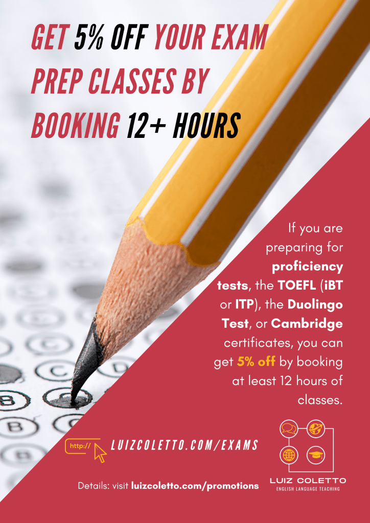 - This promotion is valid from July 15 to October 15, 2025. If you enroll for Exam Preparation classes until October 15, you will get the 5% discount applied to the total number of hours that you booked.